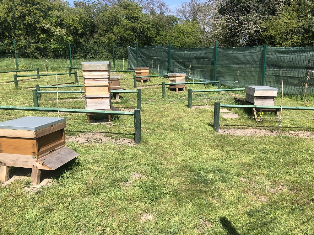In all, 35 fruit trees of various varieties, which will provide dividers between the hives and act as wind breaks. They will also act as protection for the public from the flight paths of exiting and returning bees and, along with the extensive wild flower meadow, be forage for all pollinators. This will further attract insects into the area providing much-needed habitat.
